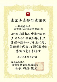社会福祉法人東京都社会福祉協議会東京善意銀行へ寄付をおこなっております。